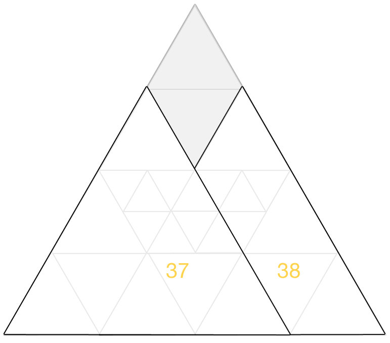 UPDATE on 10/31/2012– Mr.Chinchie found another one! You combine 13+24+25+26+27+28. So the current answer is now 41 triangles. If anyone finds another, let me know!