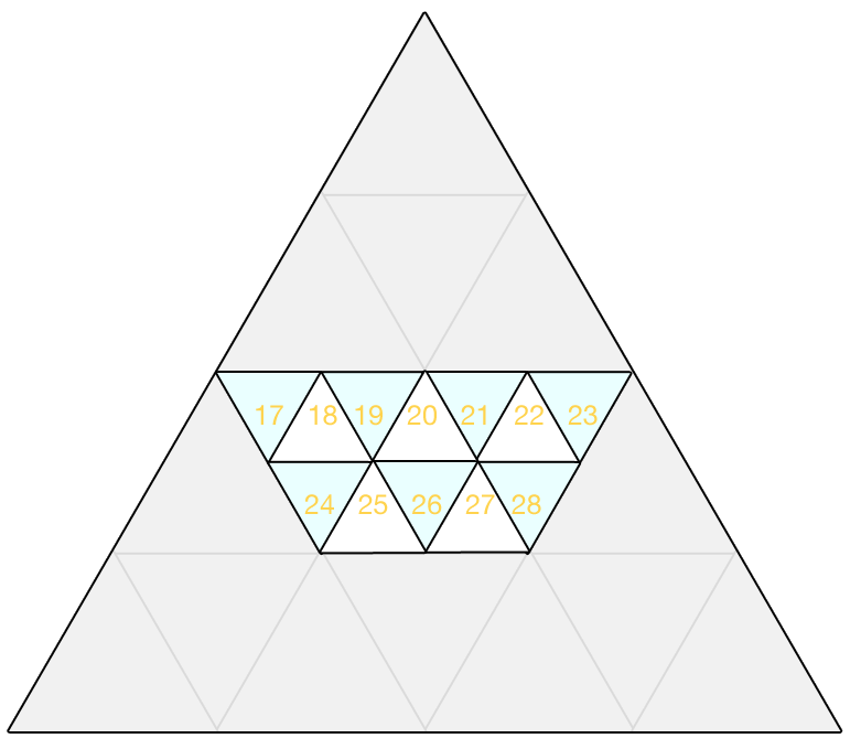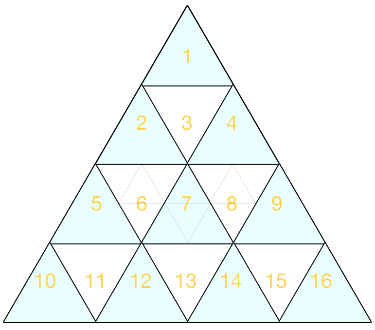 UPDATE on 10/10/2012– Faruk pointed out in the comments I missed one more triangle. You combine 19+20+21+26.